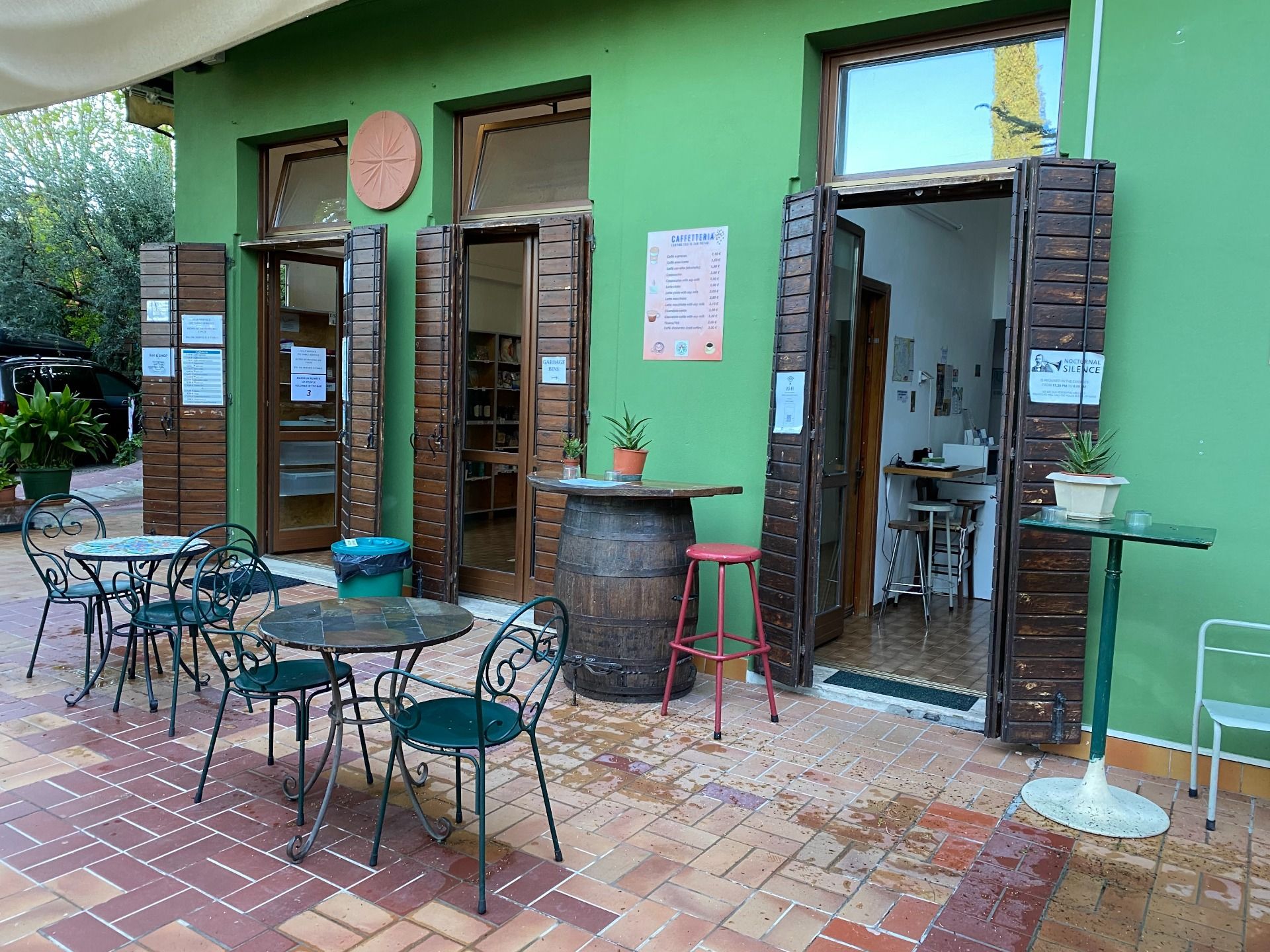 È possibile fare colazione su questa deliziosa terrazza, con ampia scelta di prodotti dal piccolo negozio di alimentari situato all'interno.